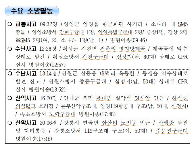 강원도 소방활동 일일상황 (8. 8. 일) 06:00