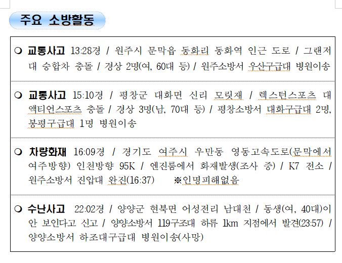 강원도 소방활동 일일상황 (8. 10. 화) 06:00