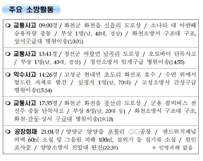 강원도 소방활동 일일상황 (8.14.토) 06:00