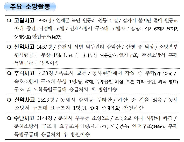 강원도 소방활동 일일상황 (8.15.일) 06:00