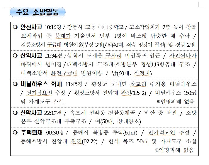 강원도 소방활동 일일상황 (8. 21. 토) 06:00