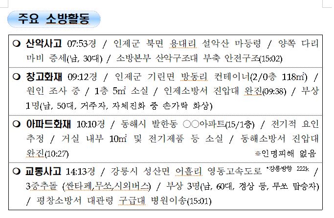 강원도 소방활동 주간상황 (8. 25. 수) 17:00