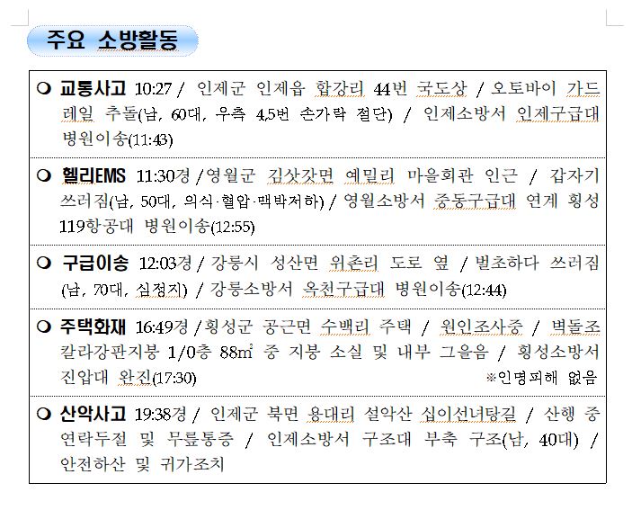 강원도 소방활동 일일상황 (8. 30. 월) 06:00