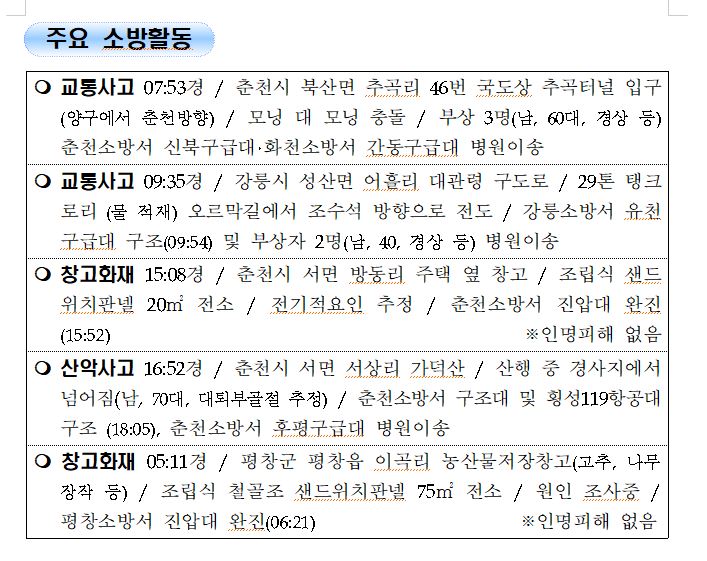 강원도 소방활동 일일상황 (9. 4. 토) 06:00