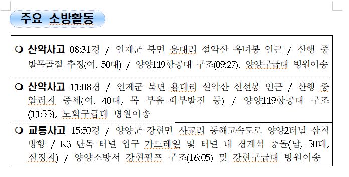 강원도 소방활동 주간상황 (10. 2. 금) 17:00