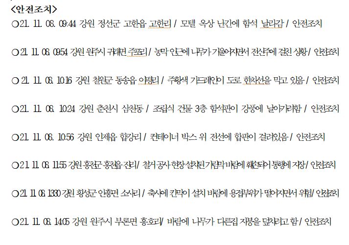 강원도 소방활동 주간상황 (11. 8. 월) 17:00