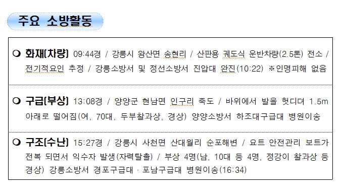 강원도 소방활동 주간상황 (11. 20. 토) 17:00