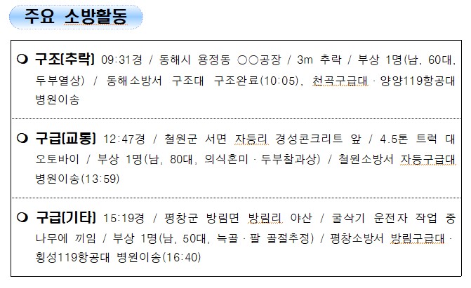 강원도 소방활동 일일상황 (12. 9. 목) 17:00