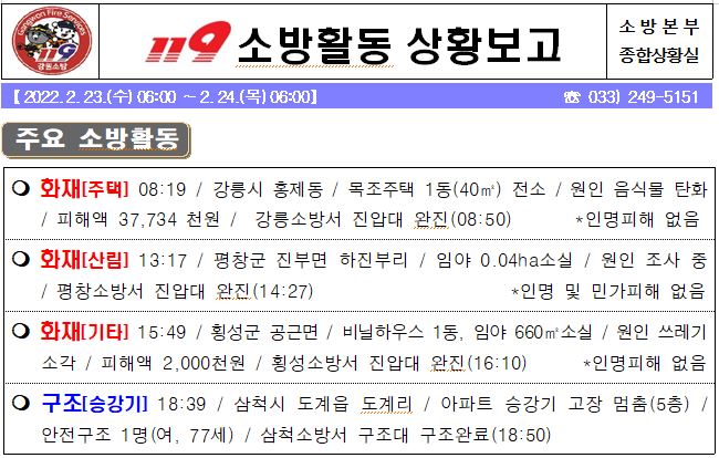119 소방활동 상황보고(2. 24. 목) 06:00