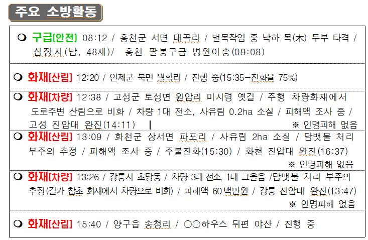 119 소방활동 상황보고(4. 10. 일) 17:00
