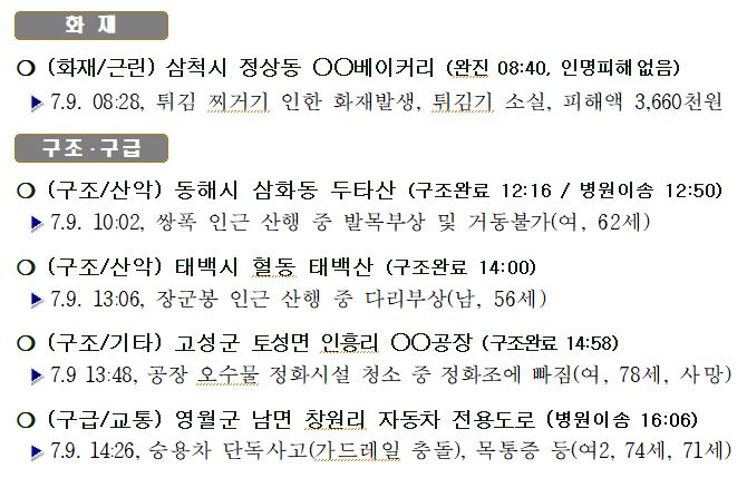 119 소방활동 상황보고(07. 09. 토) 17:00
