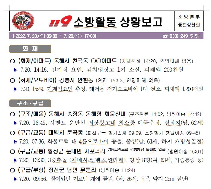 119 소방활동 상황보고(7. 20. 수) 17:00