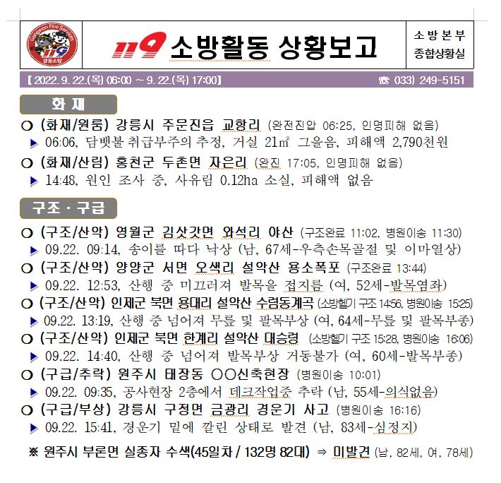 119 소방활동 상황보고(9. 22. 목) 17:00