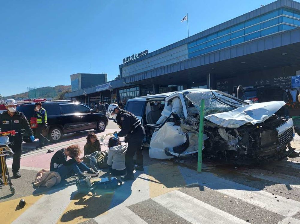 -심정지 남,62세(보행자) / 중상 여 63세(동승자) / 경상 운전자 여 65세 외 6명