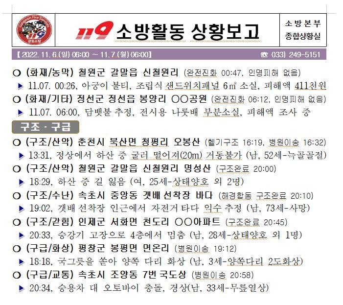 119 소방활동 상황보고(11. 7. 월) 06:00