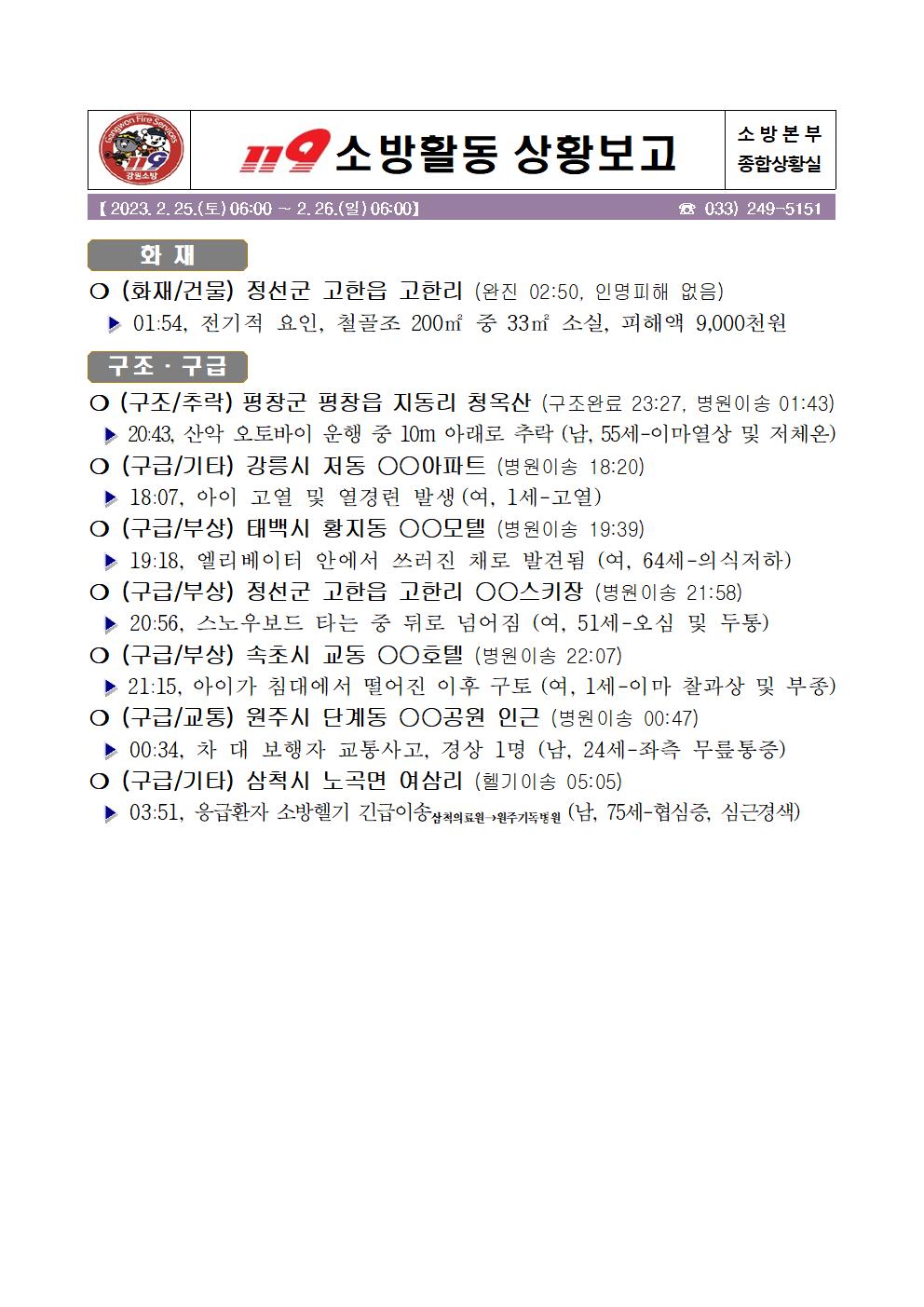 119 소방활동 상황보고(2. 26. 일) 06:00