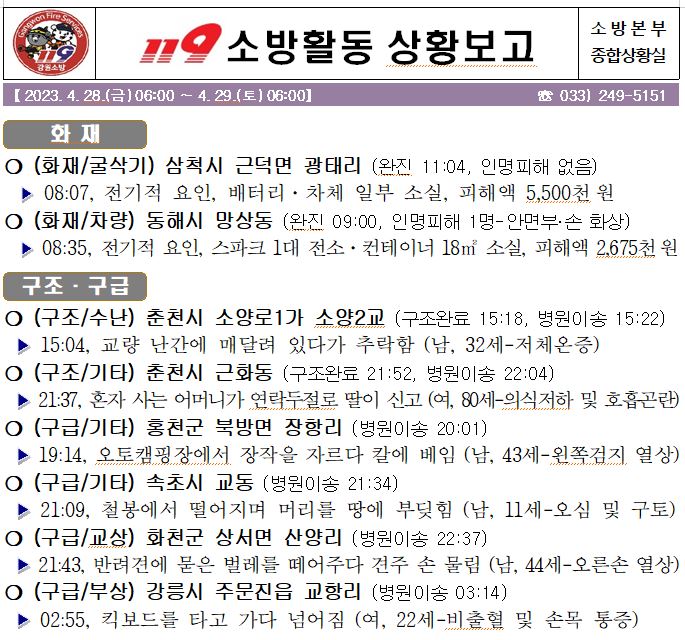 119 소방활동 상황보고(4. 29. 토) 06:00
