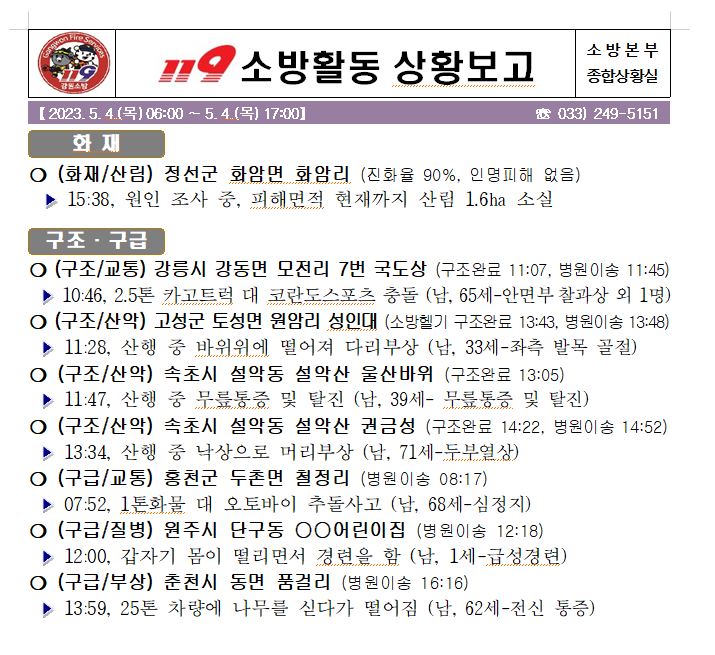 119 소방활동 상황보고(5. 4. 목) 17:00