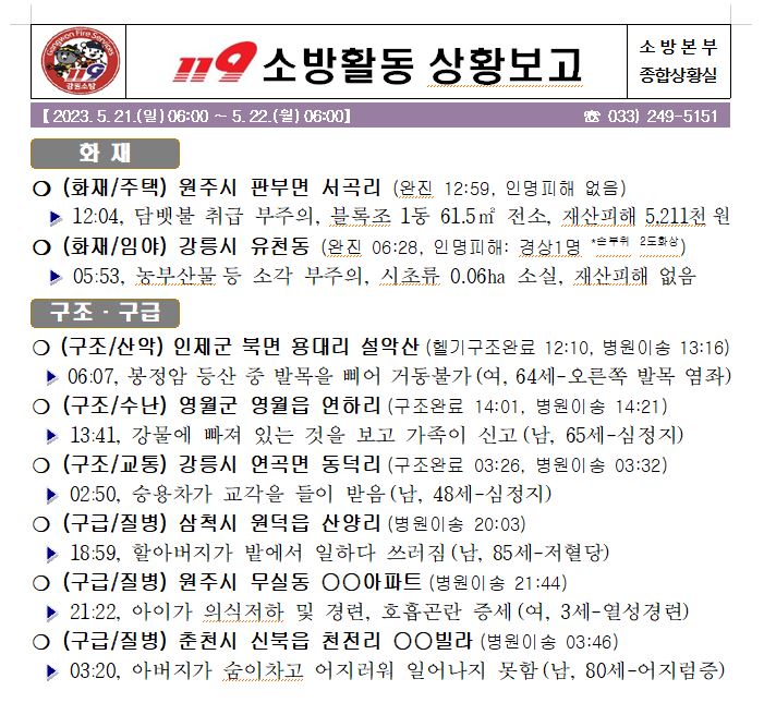 119 소방활동 일일상황보고(5.22.월) 06:00