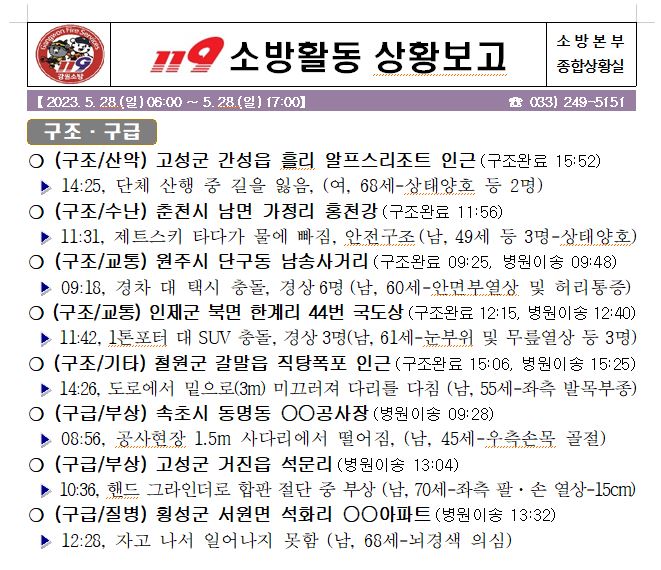 119 소방활동 일일상황보고(5. 28.일) 17:00