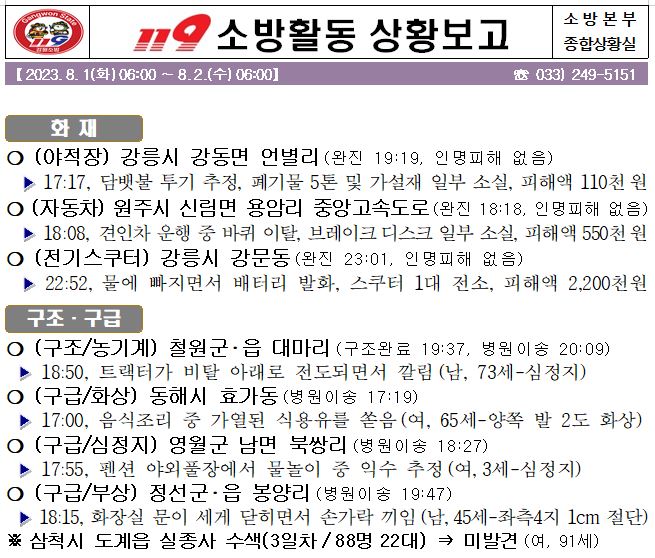 119 소방활동 일일상황보고(8.2.수) 06:00