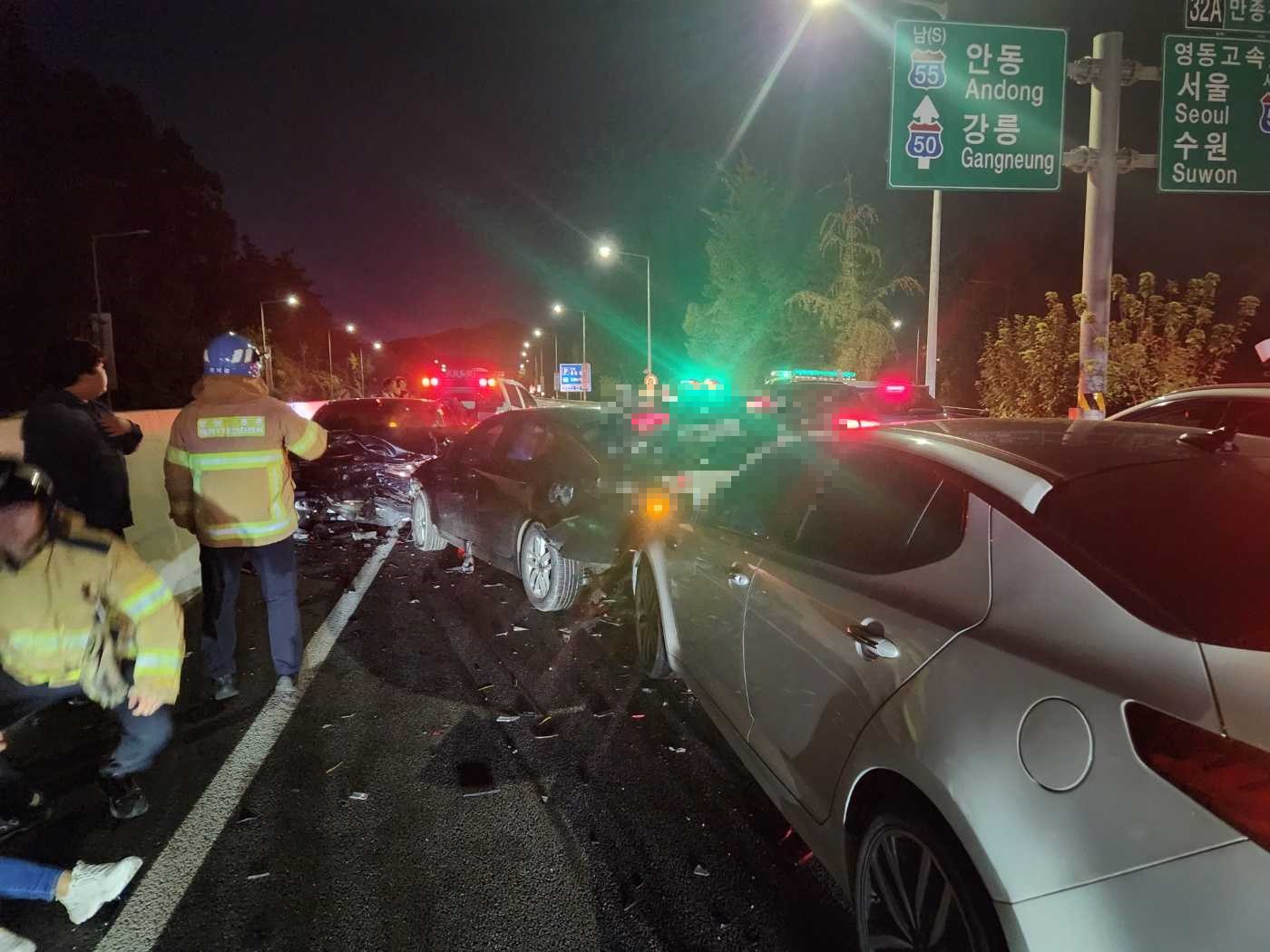 원주 중앙고속도로 4중 추돌 교통사고 사진