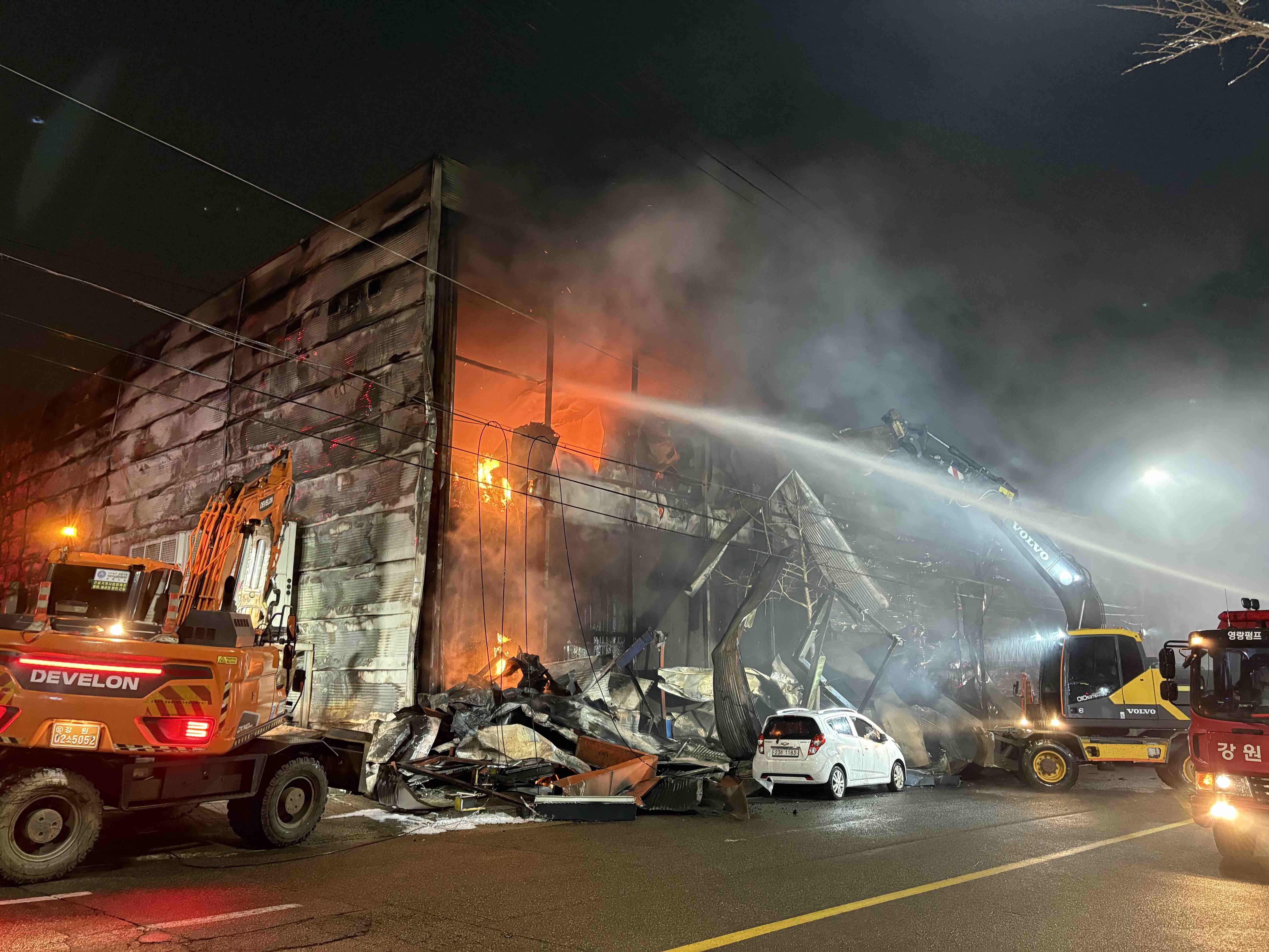 속초 대포동 공장화재 현장 사진