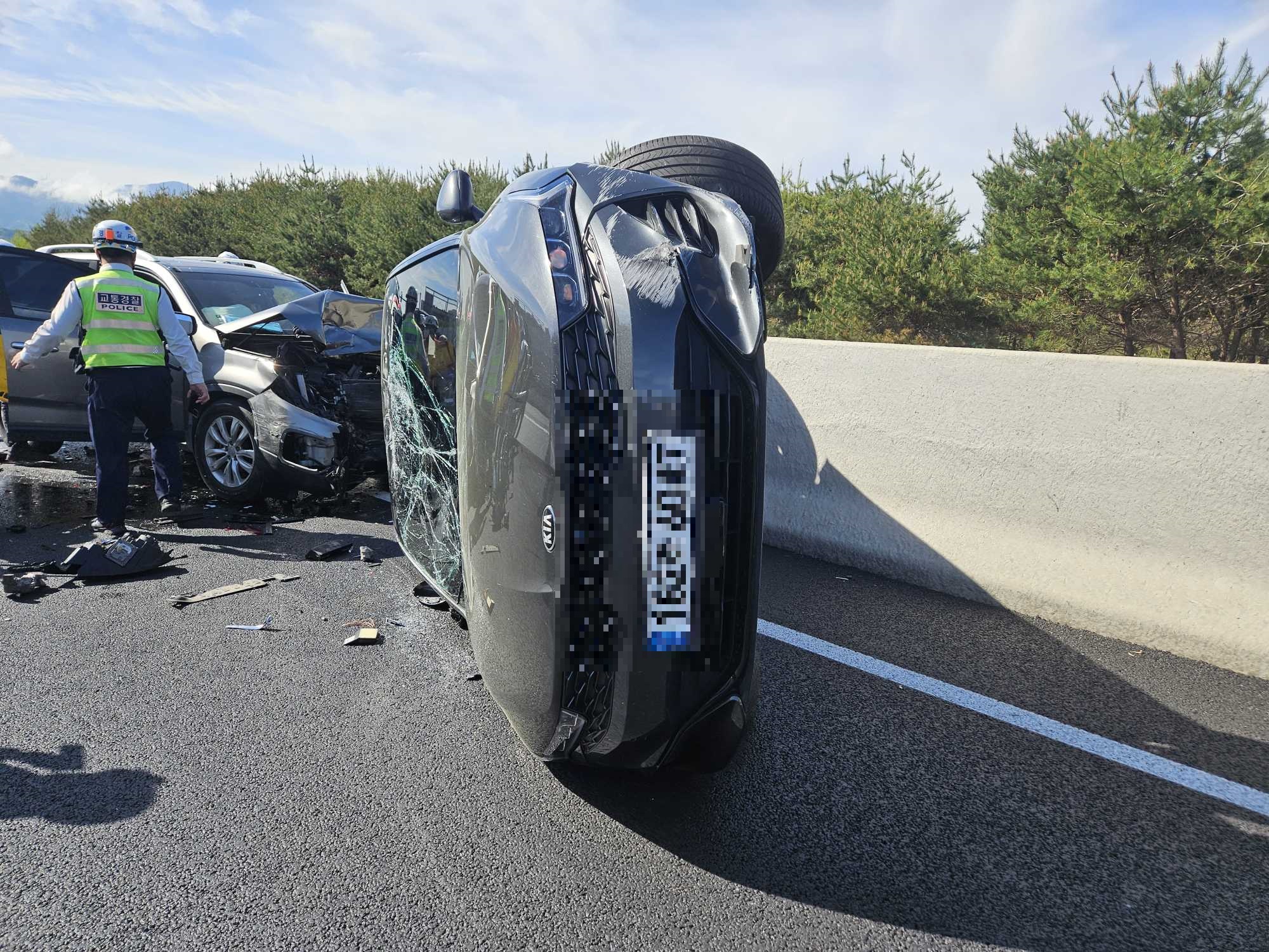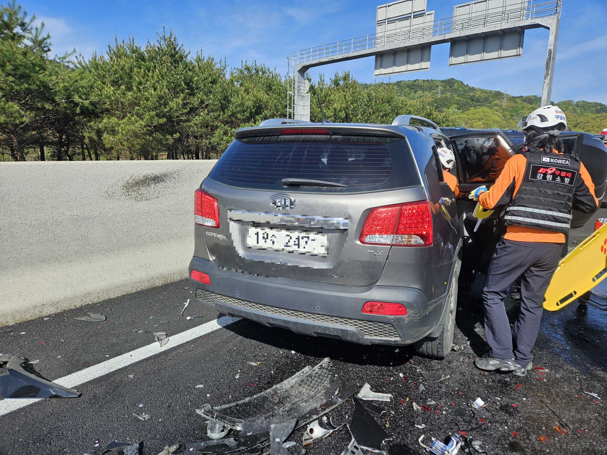 원주 중앙고속도로 3중 추돌 교통사고 사진
