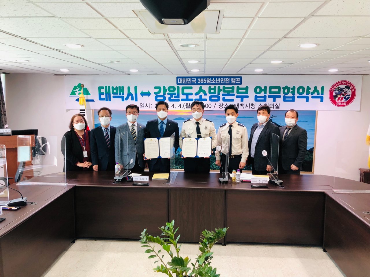 강원소방본부 태백시와 대한민국 청소년 안전캠프 협약식 가져