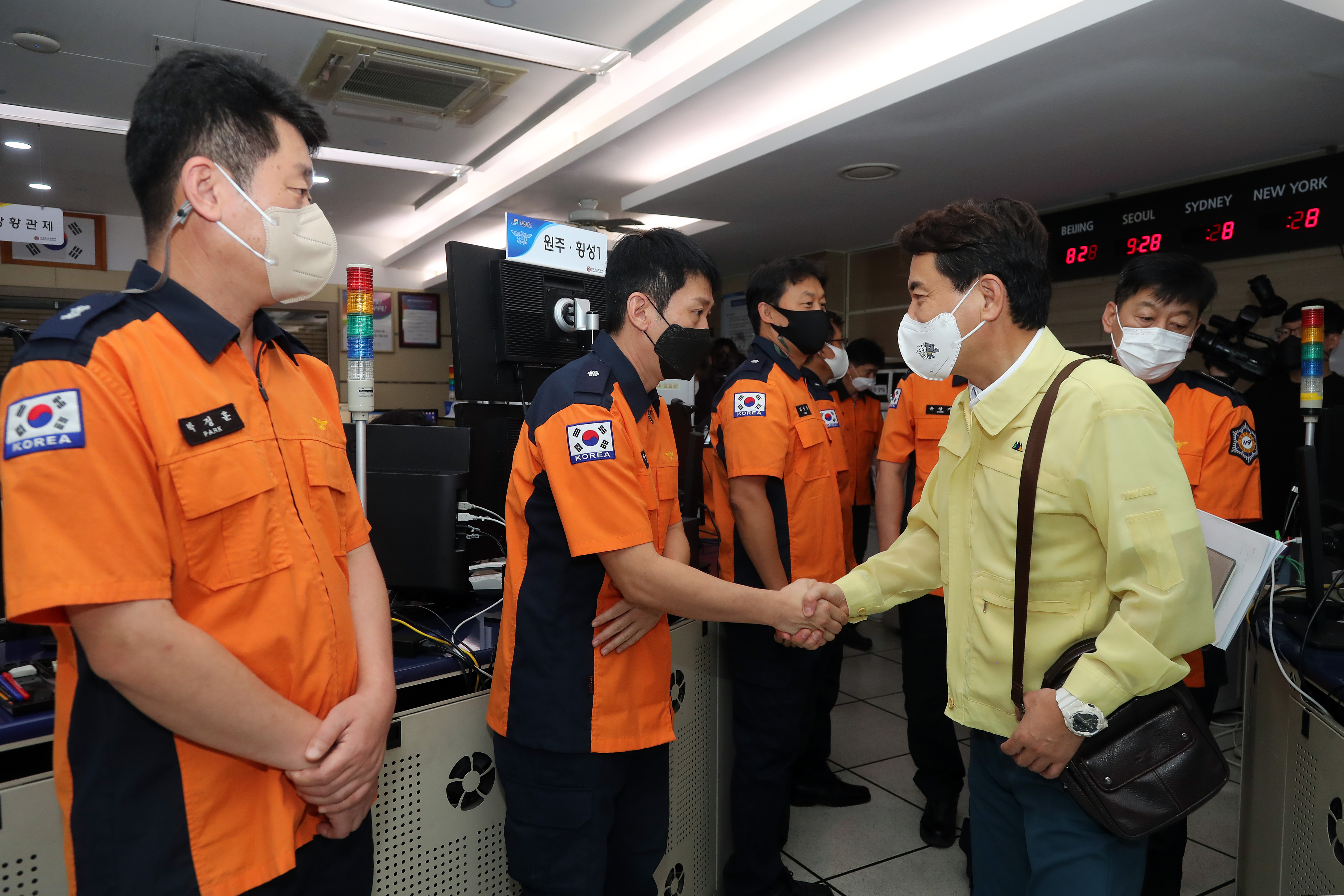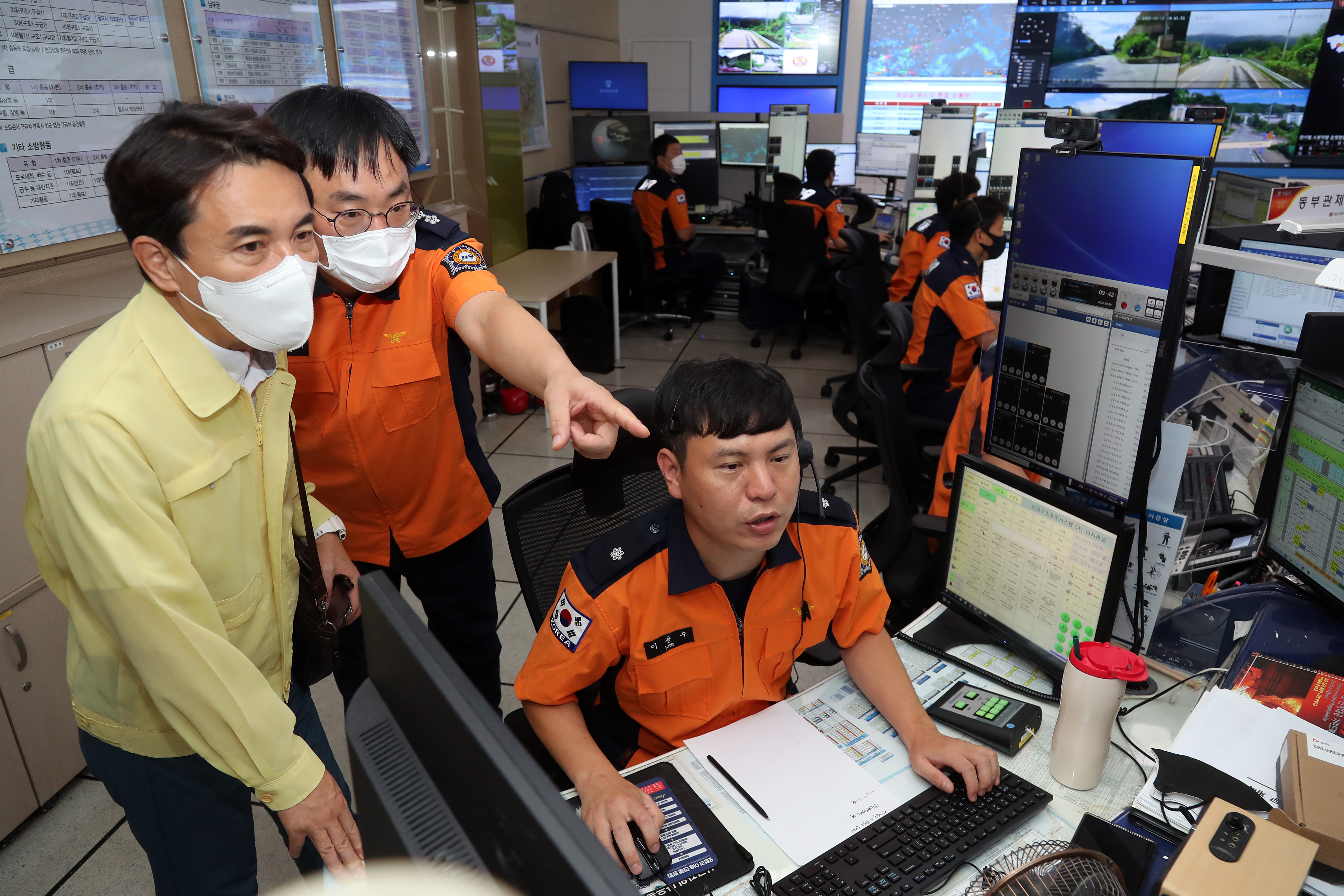 김진태 강원도지사, 비상근무 중인 119 종합상황실 찾아 격려