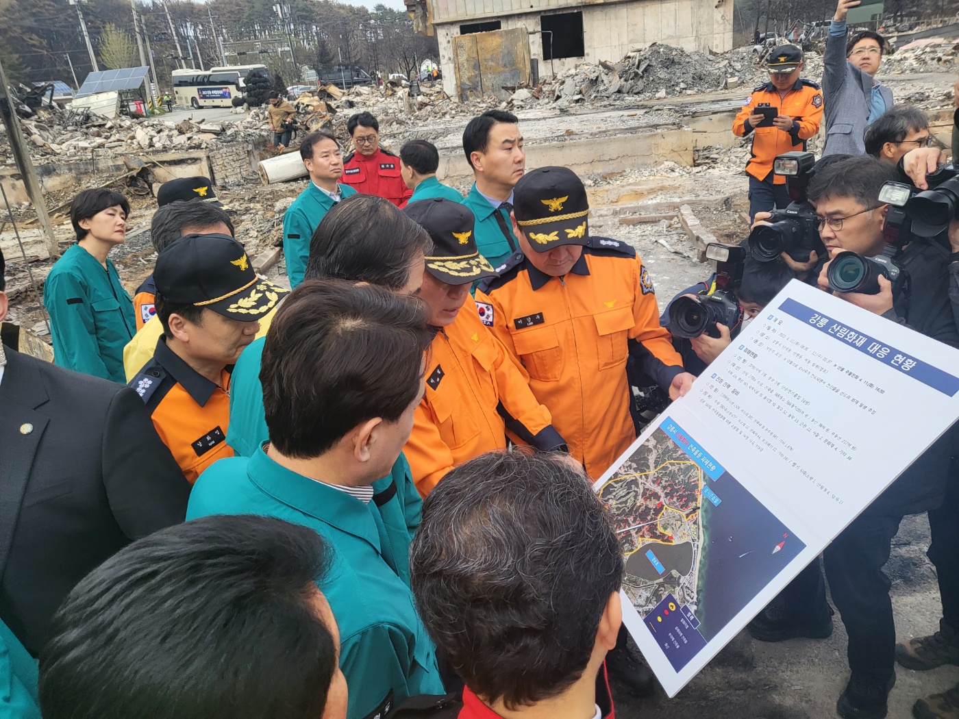 이일 본부장, 한덕수 국무총리 강릉화재 현장 방문 상황설명