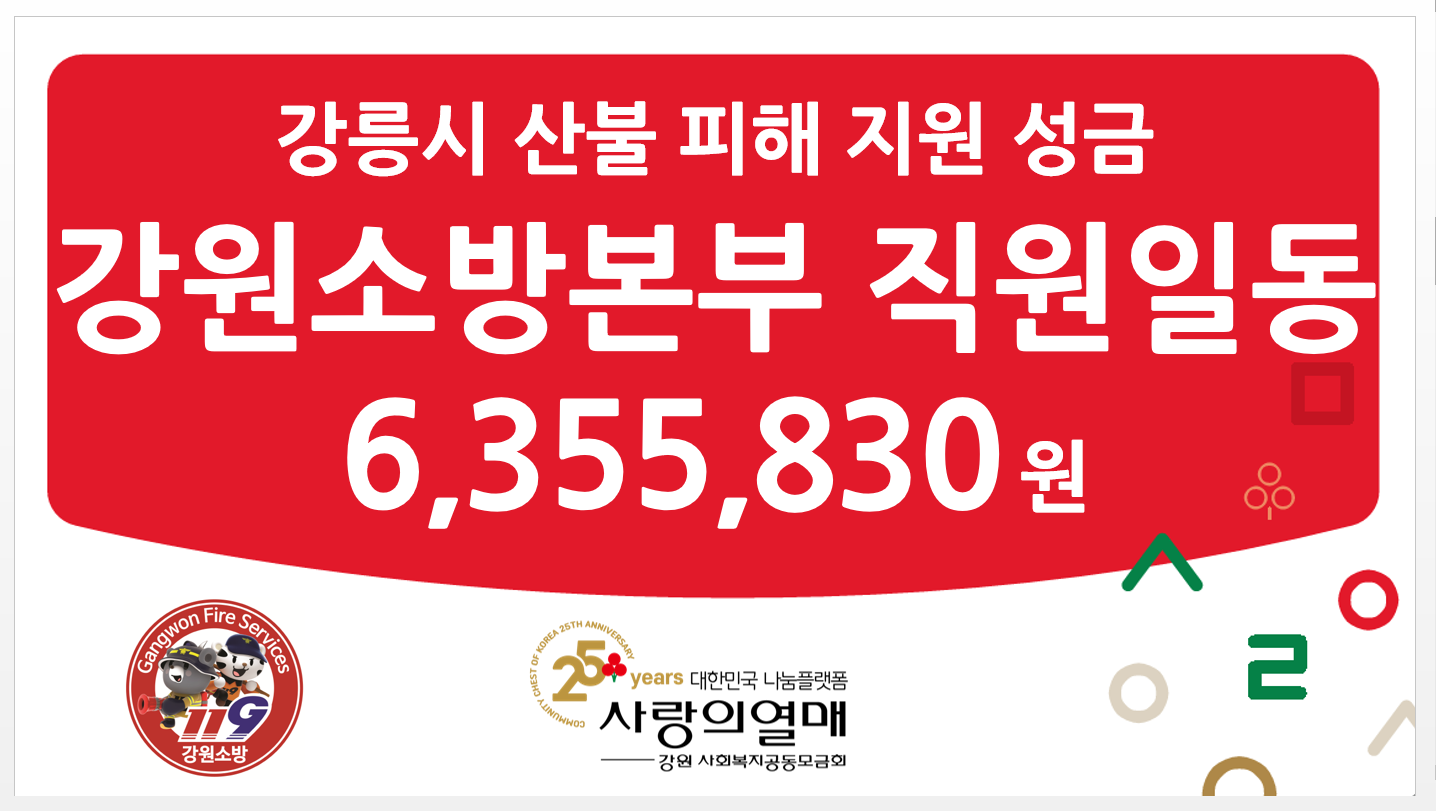 강원소방, 강릉산불 피해지원 성금 전달