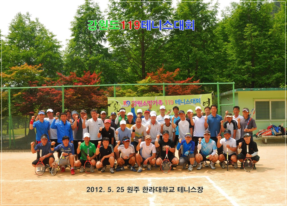 지난 5월 25일 원주 한라대학교 테니스장에서 강원도 소방테니스 동호인들이 함께 모여 활기찬 테니스대회를 실시 하였습니다.
