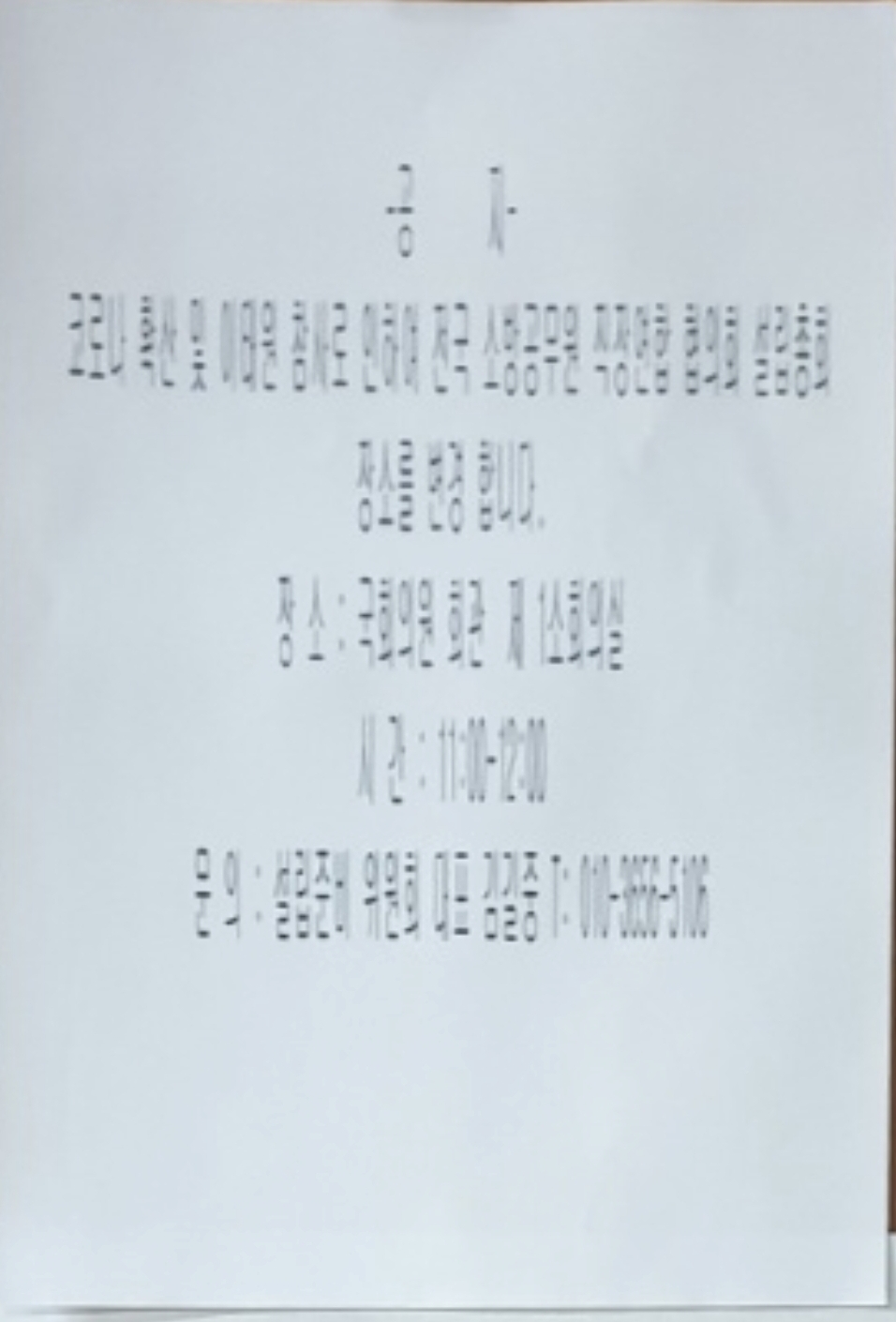 공지 전국직장협의회 설립총회 장소변경
