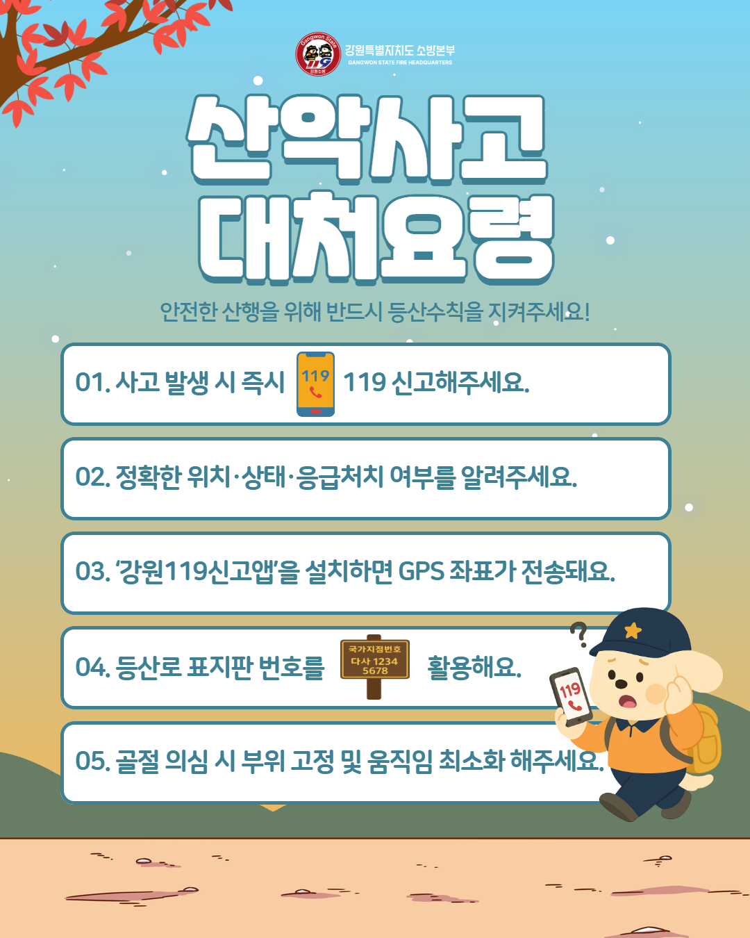 | 26860 | 정선소방서, 가을철 산악사고 대처요령 홍보 | 정선홍보 | 2025-10-17 | 217 | |