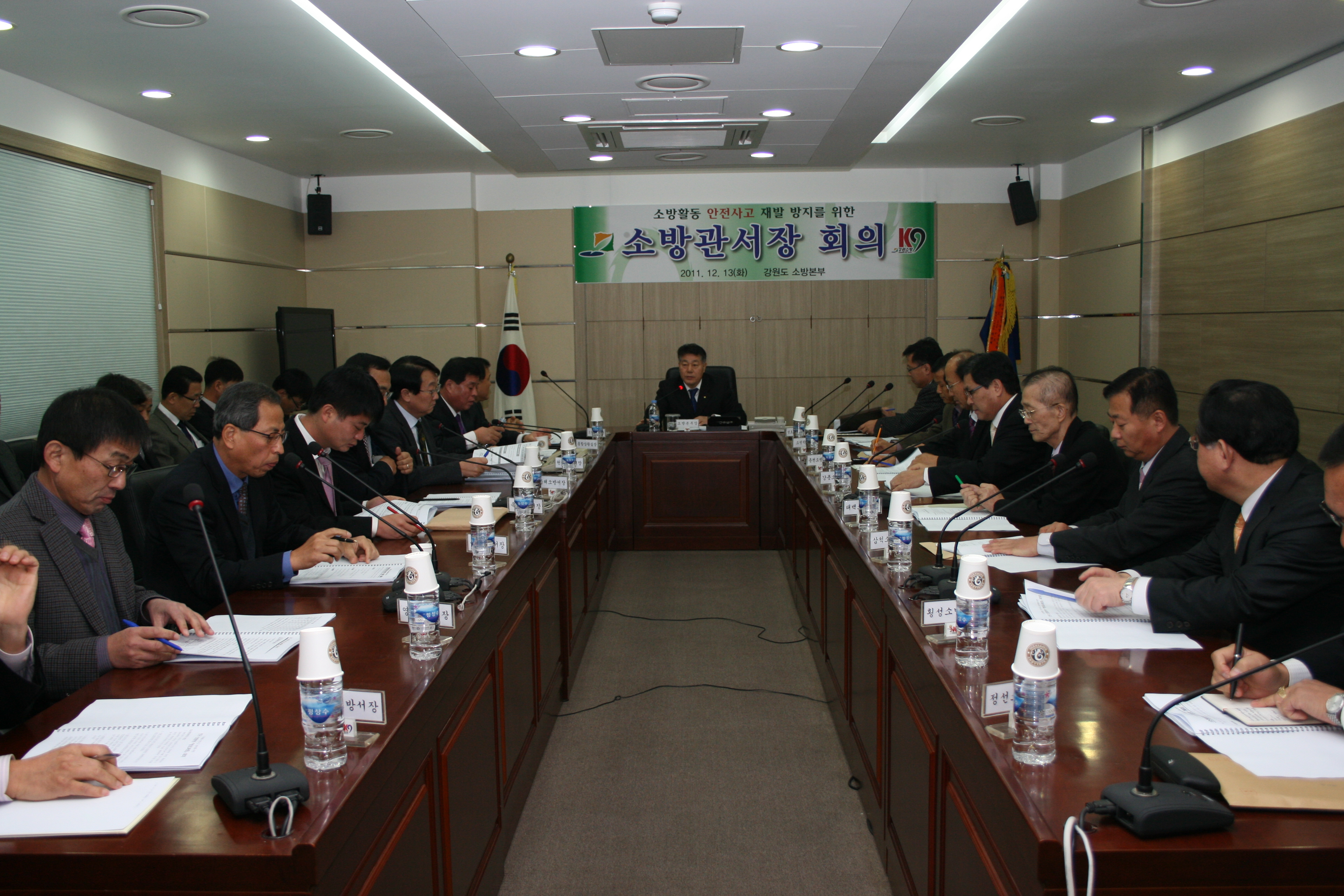 □ 강원도 소방본부【본부장 오대희】는 2011년12월13일(화) 강원도청 신관 3층 전략상황실에서 도내 소방관서장【12개 소방서장, 소방학교장】등 21명이 참석 화재현장 안전사고 재발 방지를 위한 소방관서장 회의를 개최 하였다.
