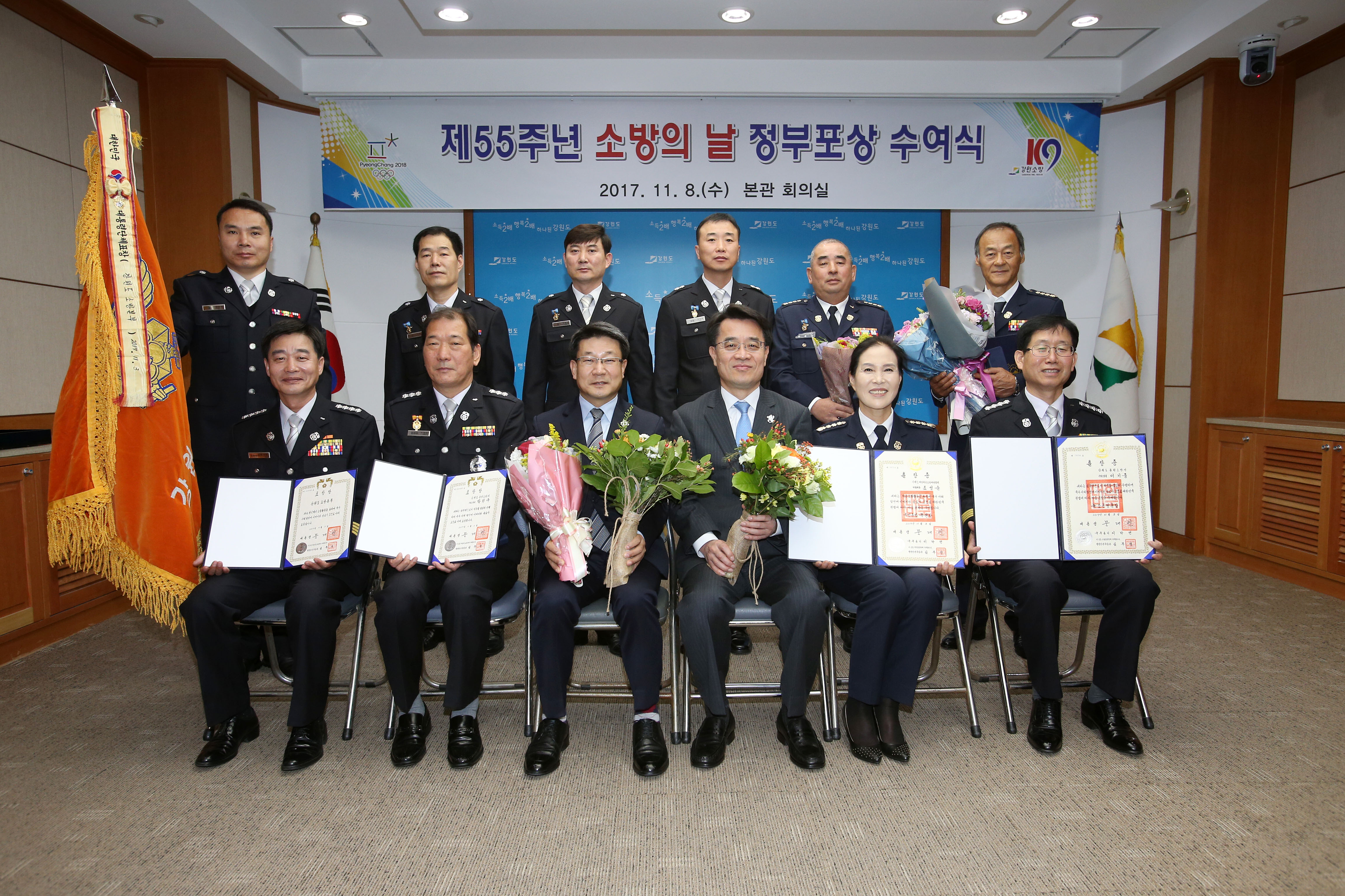 강원도소방본부(본부장 이흥교)는 8일 오전 11시 도청 본관 2층에서 제55주년 소방의 날을 맞이하여 유공자에 대한 정부포상과 표창장을 송석두 행정부지사가 전수하였다고 8일 밝혔다.