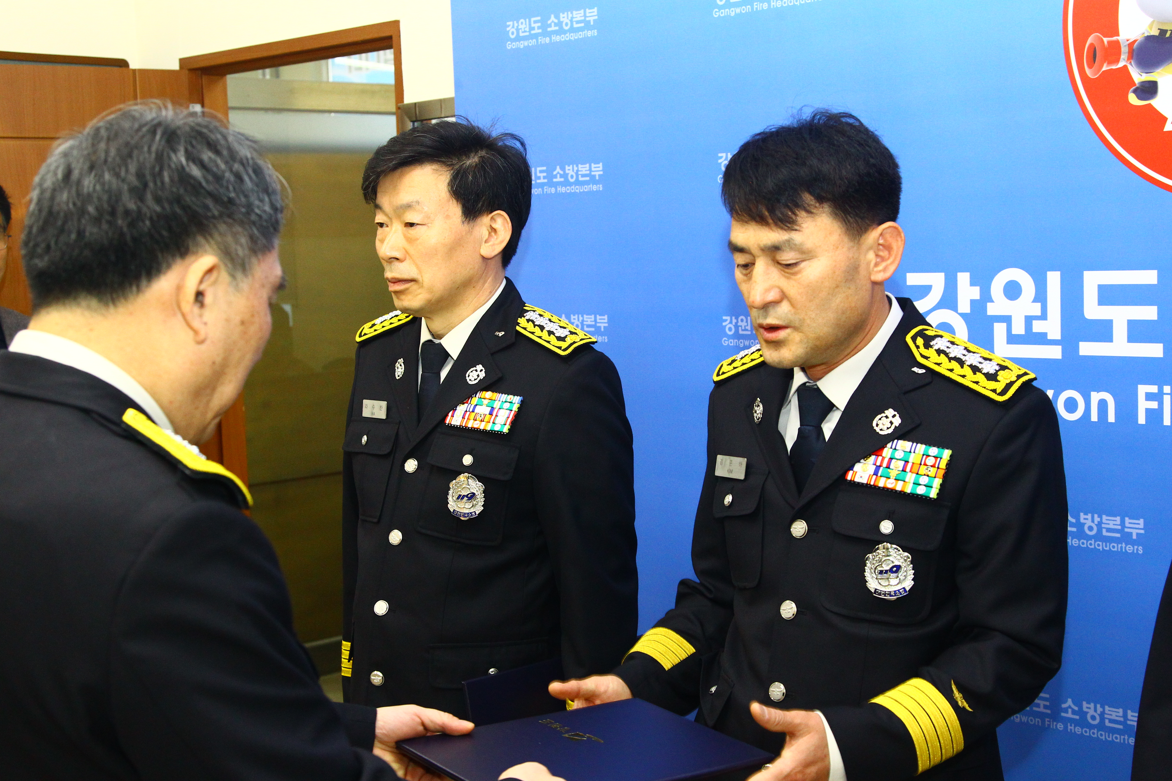 ○ 강원도소방본부(본부장 이일)는 21일 10시에 본부장실에서 소방정 인사발령자 5명에 대한 임명장 수여식을 개최했다.