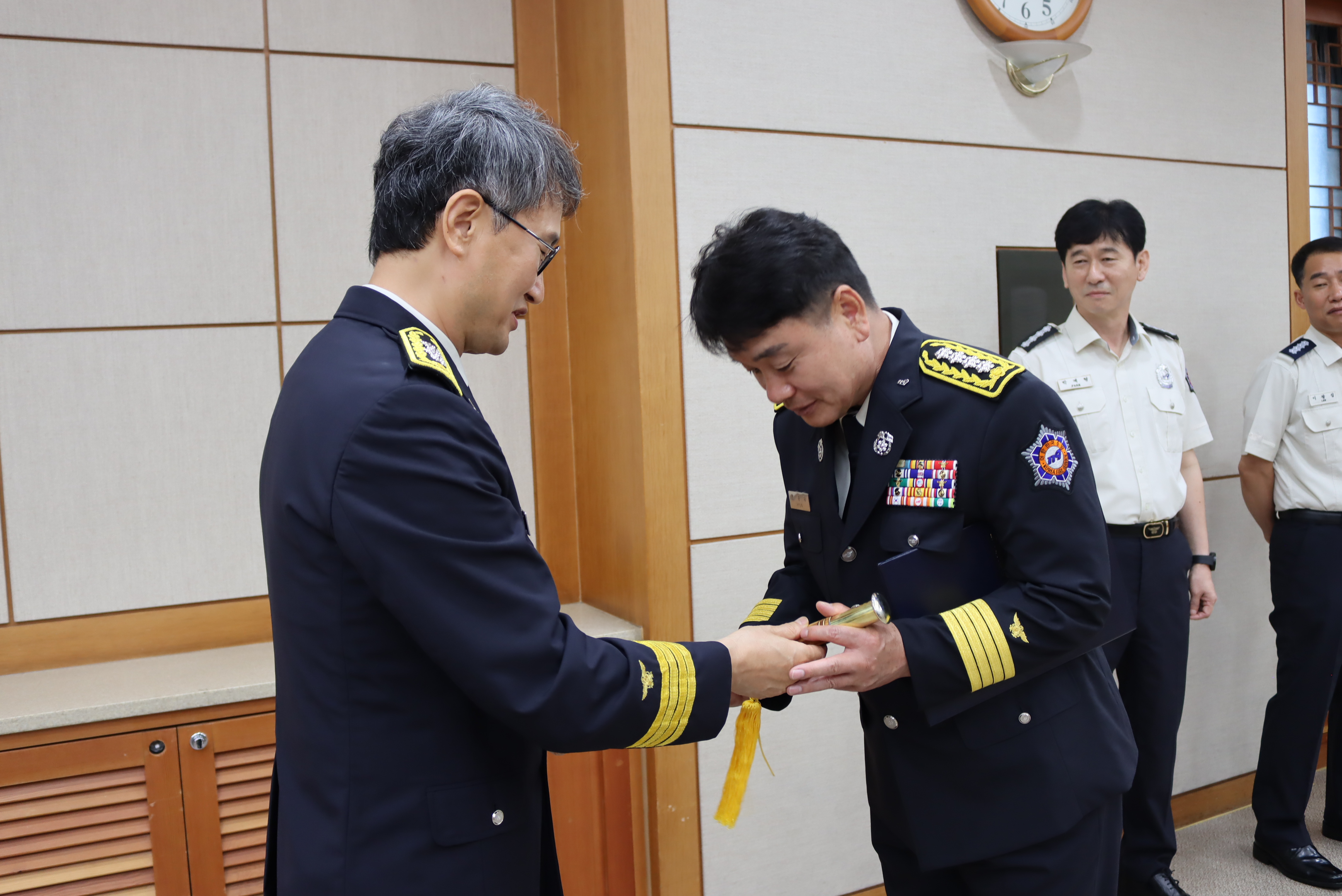 강원특별자치도청 본관 2층 소회의실에서 소방정 및 소방령 임명장 수여식을 개최했다.