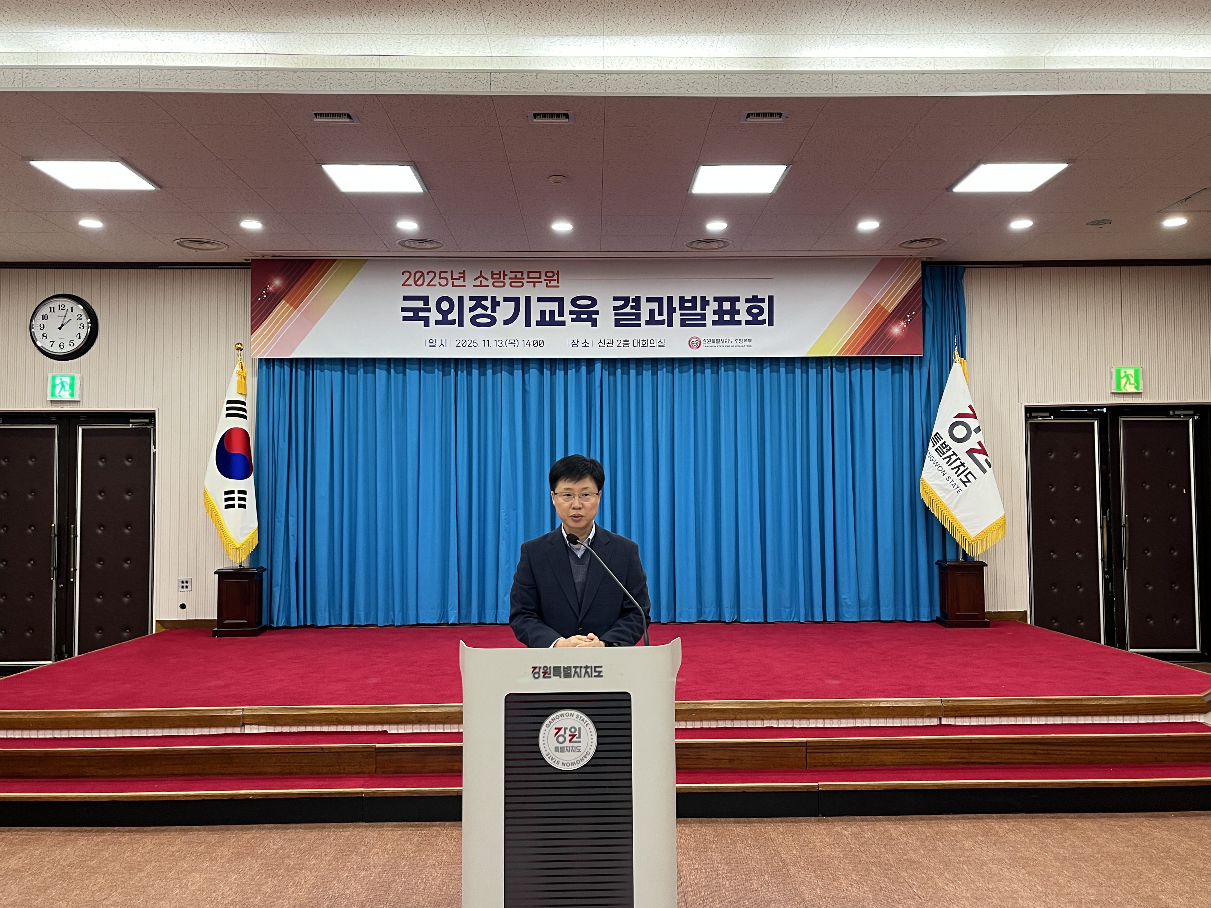 ○ 강원특별자치도 소방본부(본부장 오승훈)는 2025년 국외장기교육을 마친 소방공무원들의 연구 성과를 공유하고 해외 선진 소방정책 도입 가능성을 논의하기 위해 ‘2025년 국외장기교육 결과발표회’를 개최했다고 밝혔다.