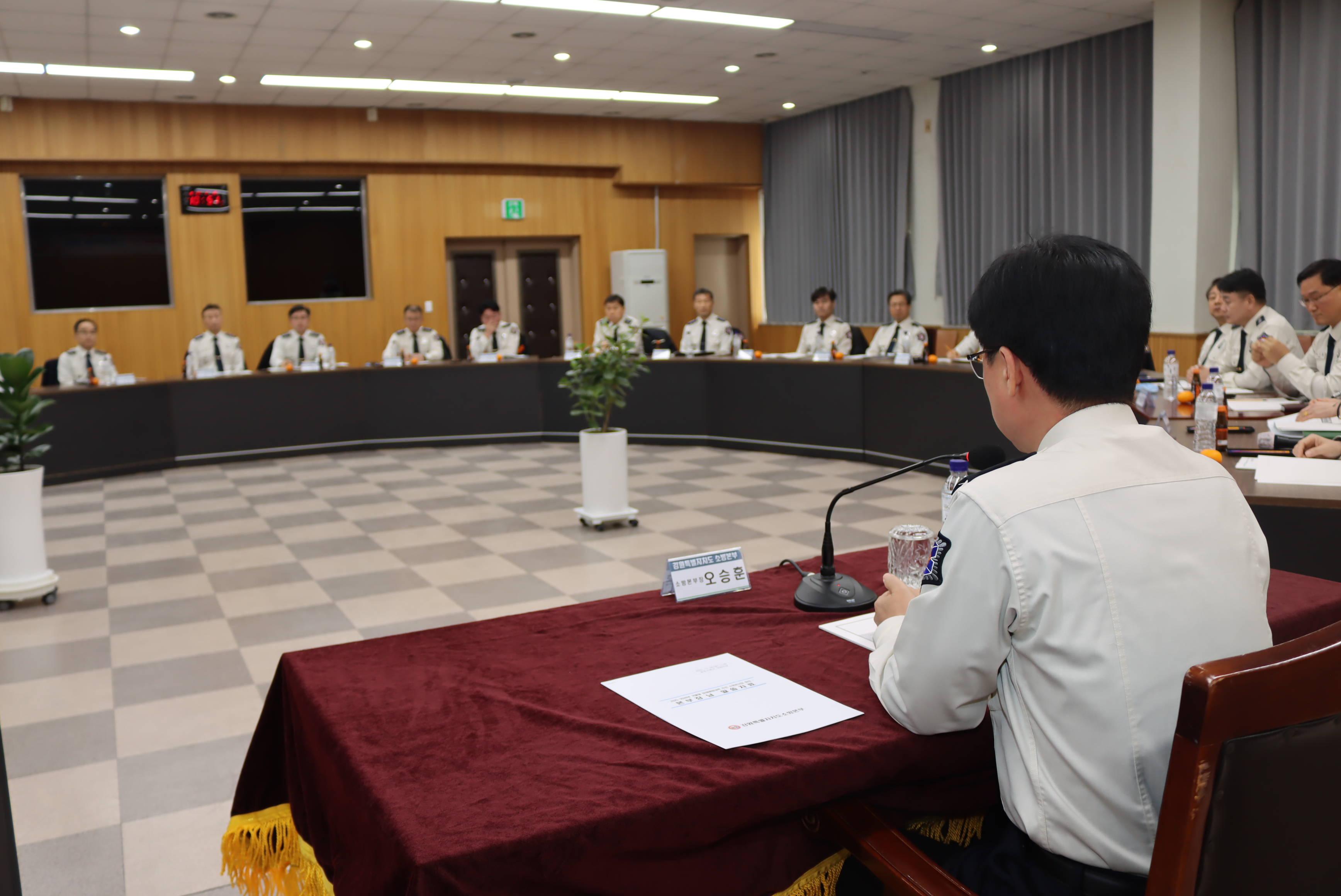 ○ 이날 회의에는 오승훈 소방본부장을 비롯해 도내 21개 소방관서장 등 30명이 참석해, 지난 2개월간의 겨울철 안전대책 상황을 중간 점검하고 남은 겨울철 기간 동안 재난 예방과 대응 시책을 보완·강화하기 위한 방안을 중점적으로 논의했다.