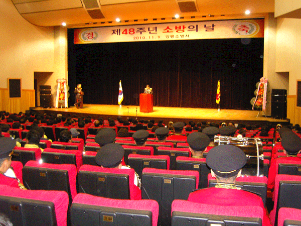 강릉시 종합문화예술회관에서 거행된 제48주년 소방의 날 행사 사진입니다.