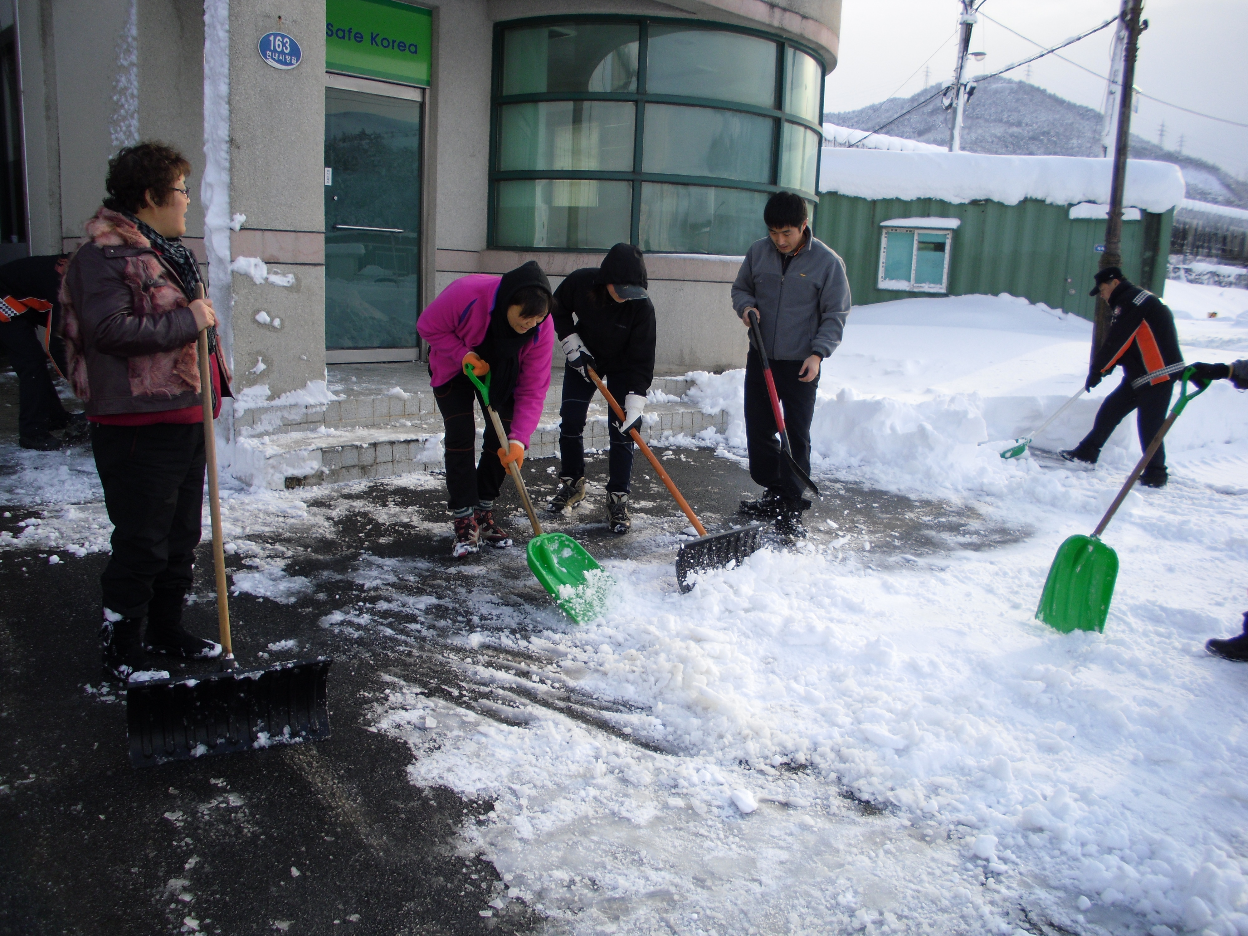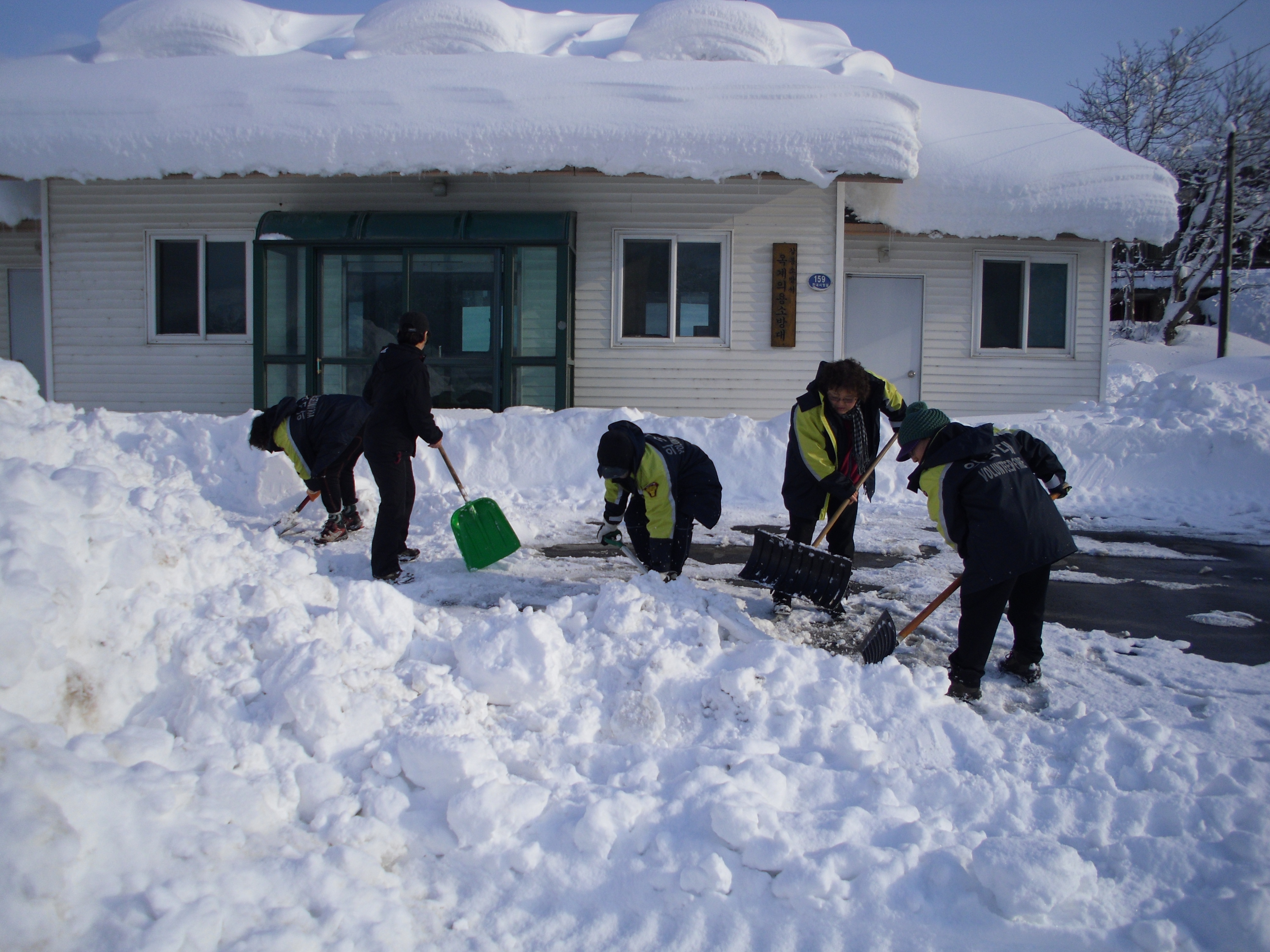 옥계여성대는 5동네로 누어져 있어,대원들을 모두 소집할 수 없어 현내리와 아파트 대원들 만이 참여하여 119대원과 함께 제설작업을 하였습니다.