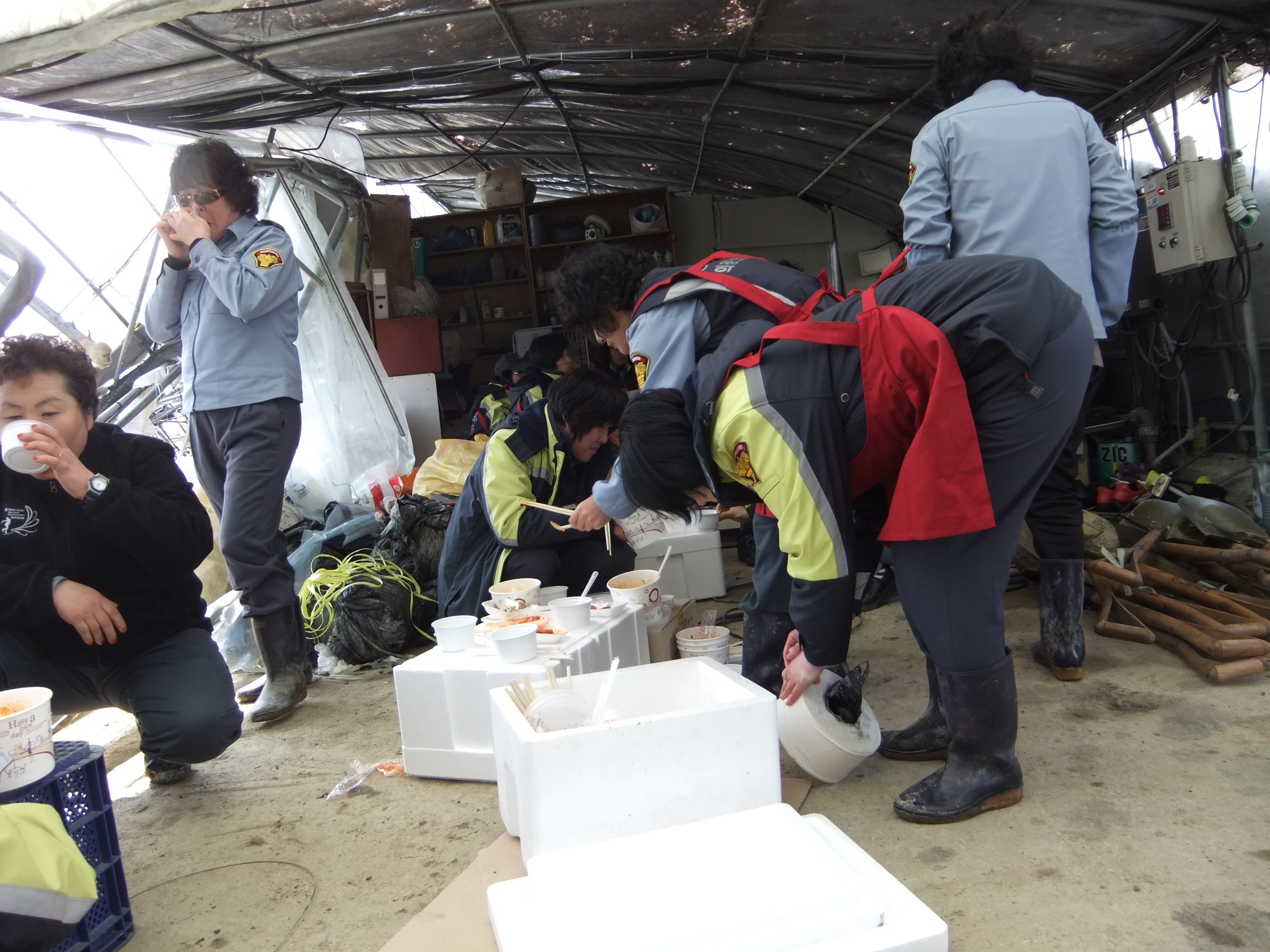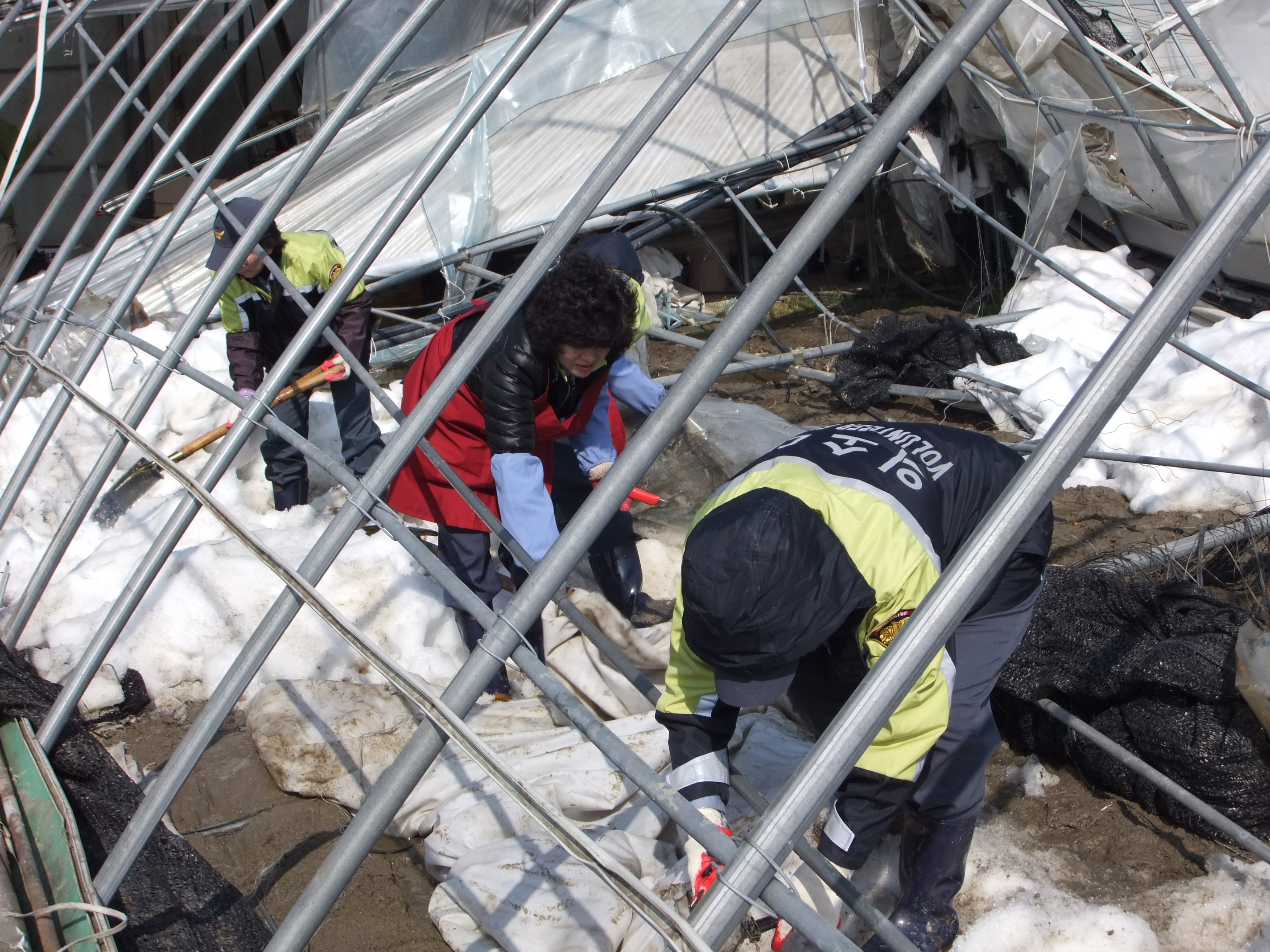 무너진 비닐하우스 잔해제거작업