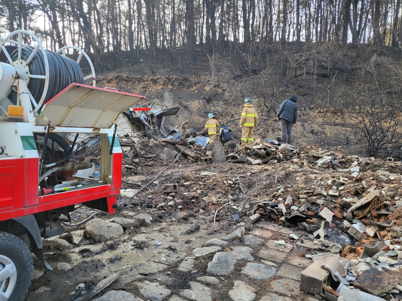 ❍ (뒷불감시) 산불진화차의 기동성을 활용하여 소방펌프차가 진입 곤란한 지역의 뒷불감시 및 잔화정리 지원