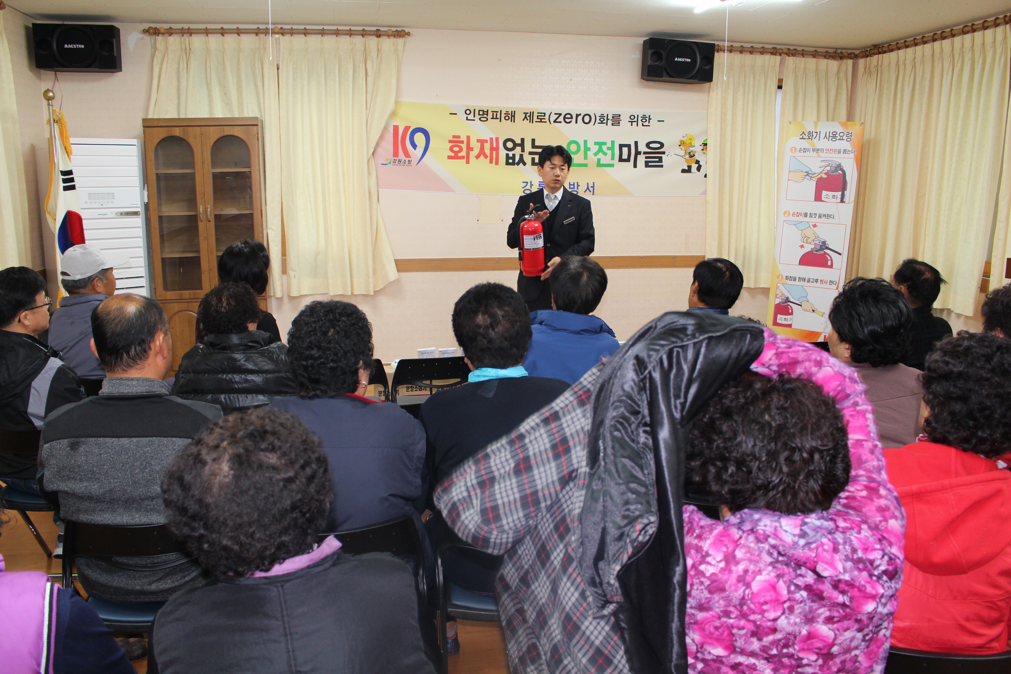 이날 행사에는 정은철 강릉소방서장, 황병두 강동면장, 김기영 강릉시의원, 마을이장, 마을주민 등 40명이 참석하였으며, 화재없는 안전마을 현판 부착, 마을이장 명예소방관 위촉, 주민 소방안전교육, 기초소방시설 보급 등으로 진행되었으며, 영동화력발전처 직원들도 참여하여 봉사활동을 실시하였다.