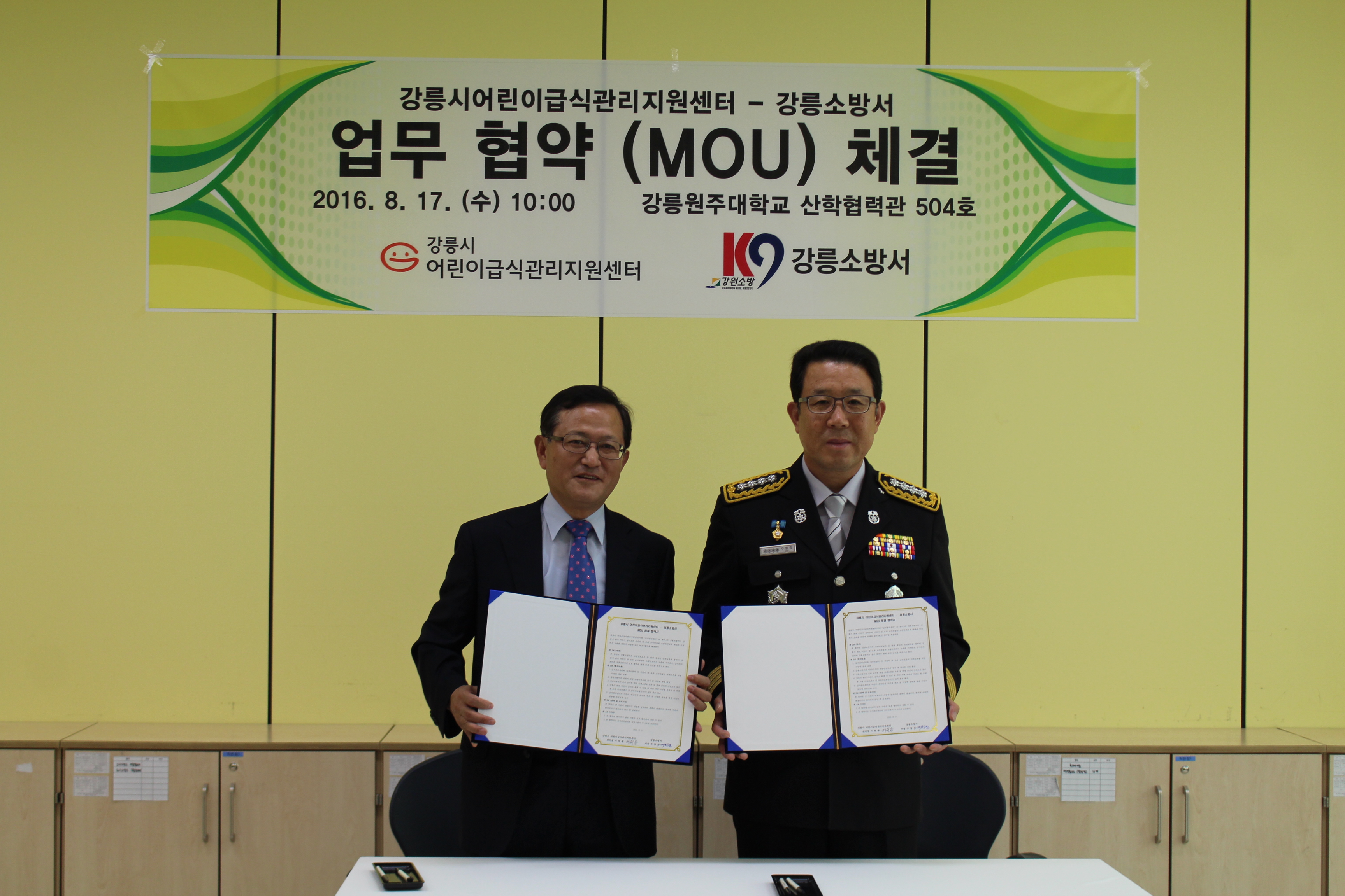 강릉소방서와 강릉급식지원관리센터가 MOU를 체결했습니다. 급식지원관리센터 담당 급식소의 어린이들과 보육교사들이 소방안전교육을 받고 다양한 안전체험을 할 수 있도록 적극 나서겠습니다~^^