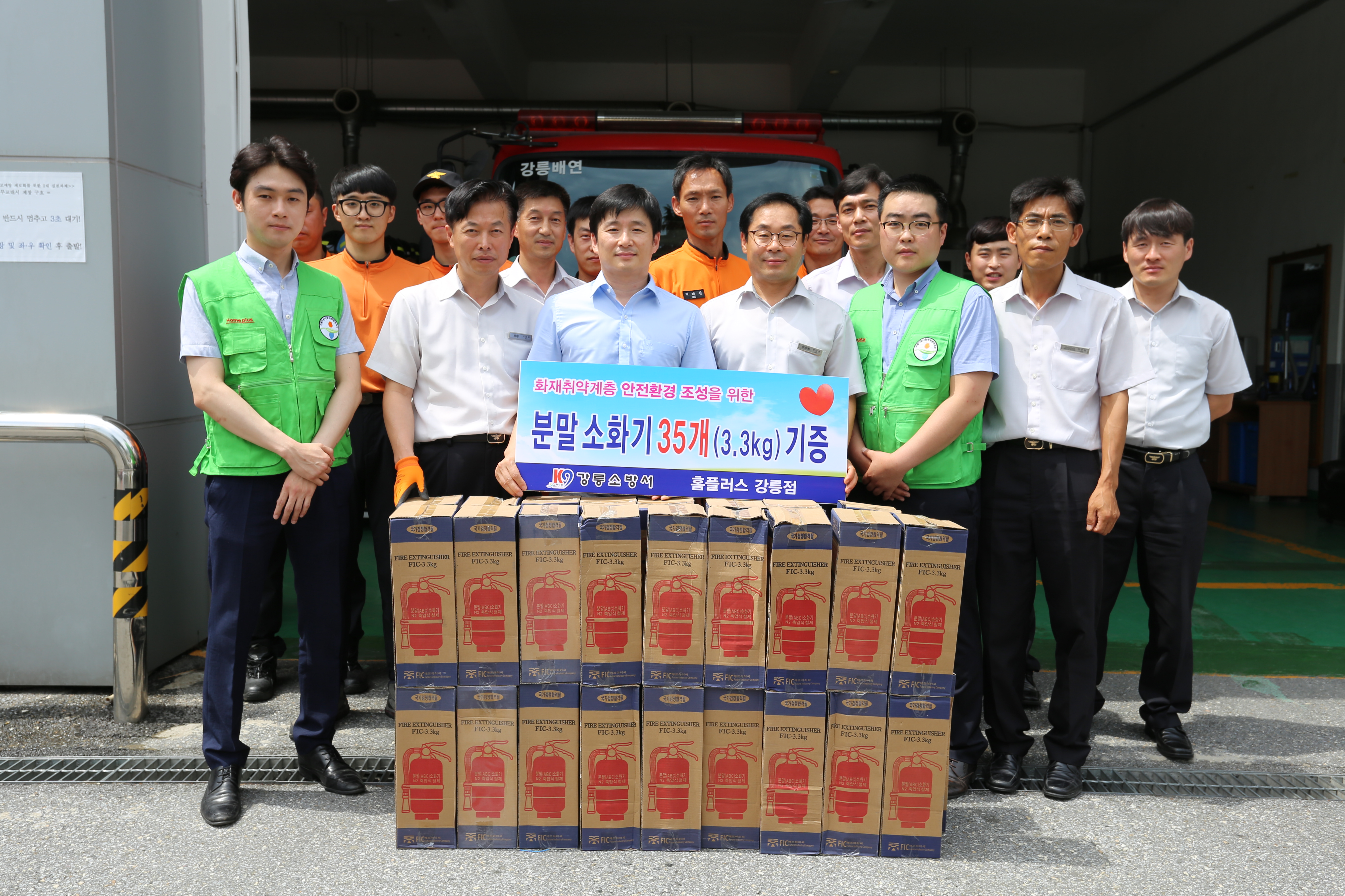 강릉소방서, 홈플러스 강릉점 취약계층 지원을 위한 소화기 기증