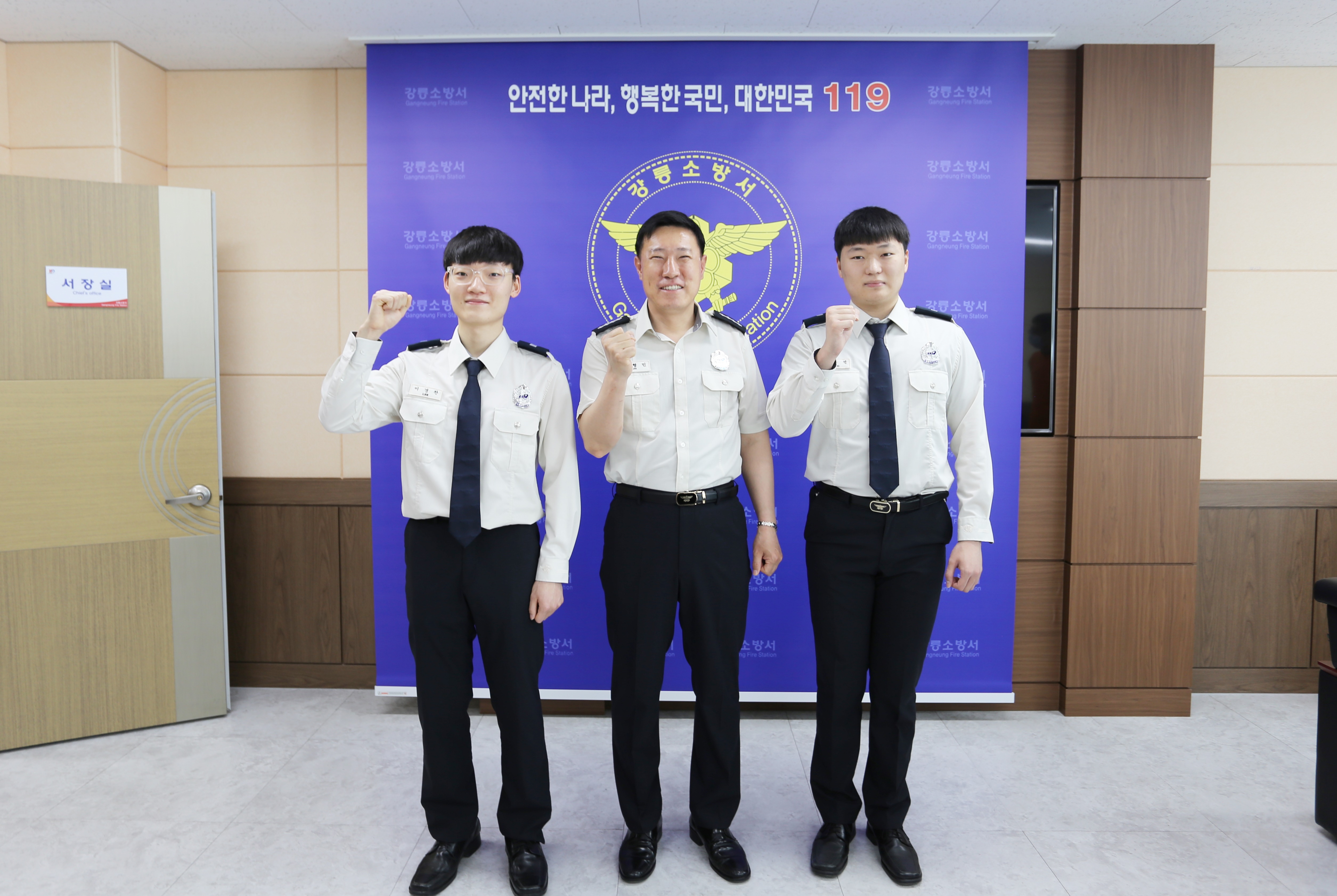 5월 6일 오전 9시 강릉소방서 서장실에서 의무소방원(이경찬, 강우석) 전역식이 개최되었습니다 !