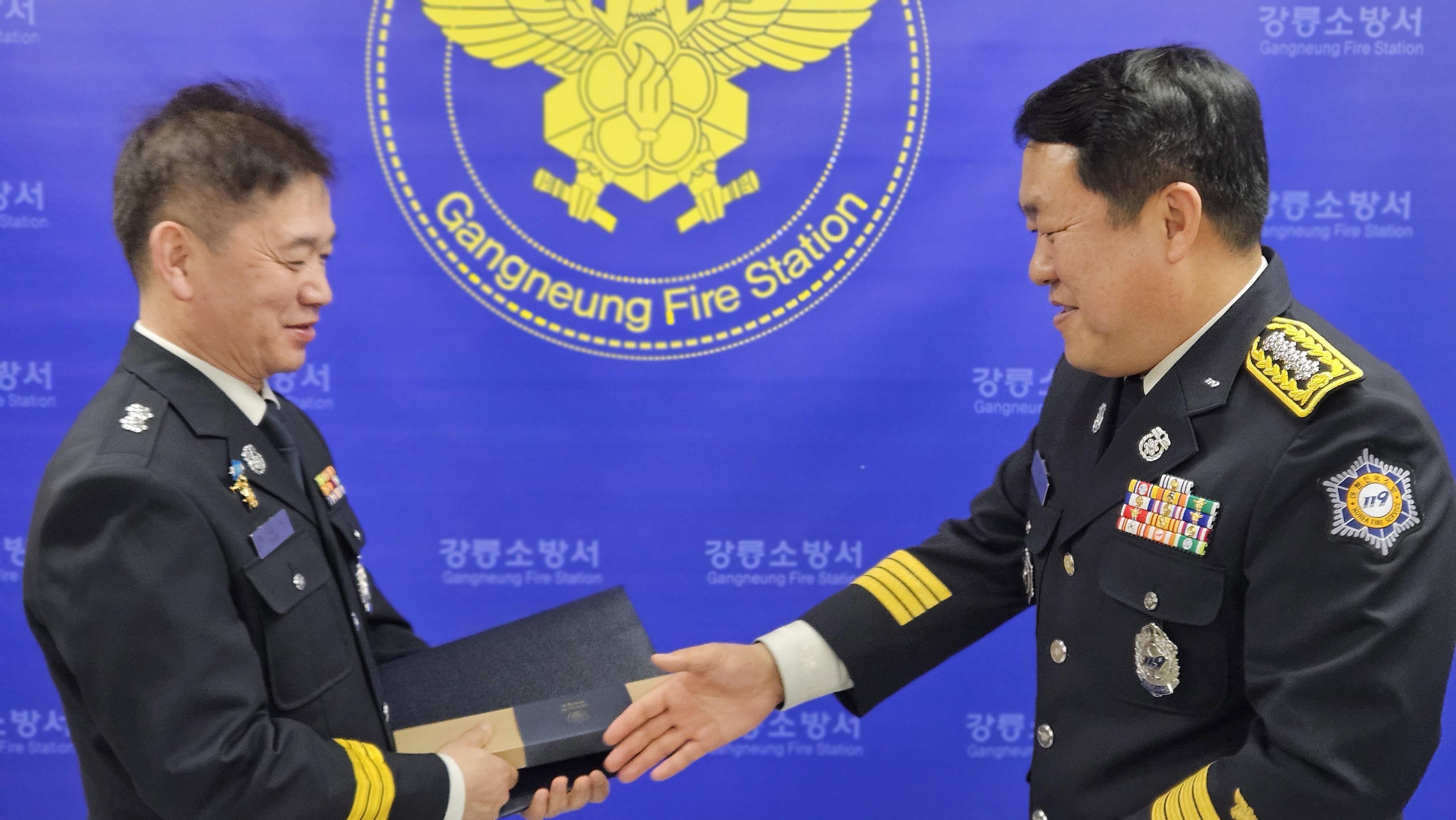 금일 강릉소방서에서 대테러 유공 수여식이 있었습니다.